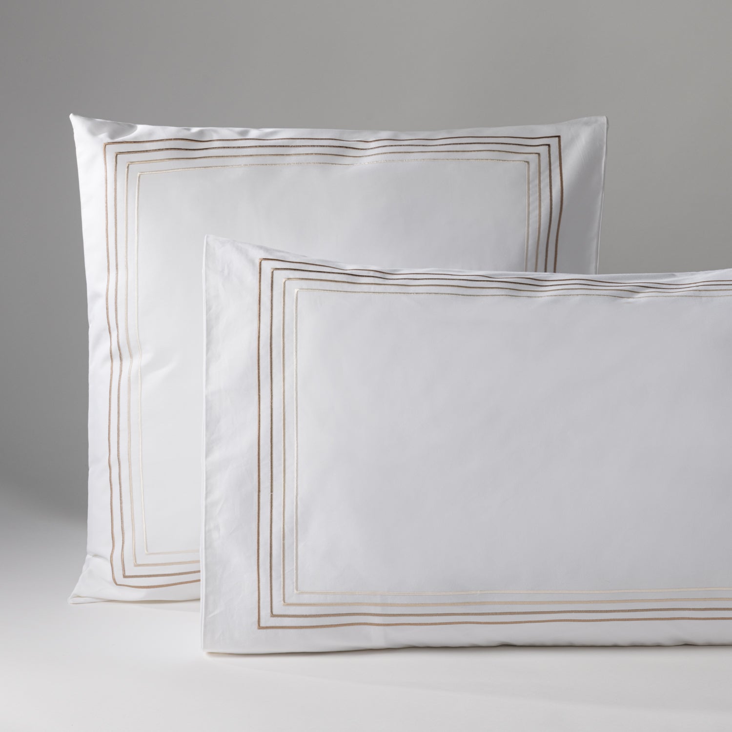 Soft hues, seamless serenity. The Serenity Sateen Collection, woven from 400-thread-count cotton sateen, features a meticulously crafted four-color gradient embroidery. With its smooth touch and delicate detailing, it transforms your bed into a space of effortless elegance and peaceful rest.